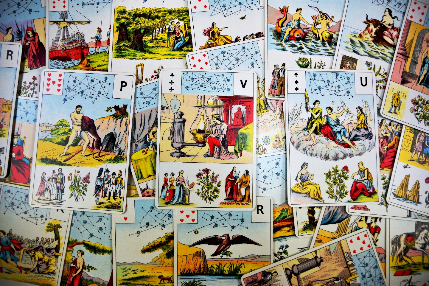 Ακριβώς επειδή οι 52 κάρτες είναι γεμάτες από την ελληνική μυθολογία, τουλάχιστον οι μισές από αυτές, η δυσκολία έγκειται στο να βρει κάποιος αξιόπιστες πηγές να διαβάσει τι βλέπει στην εικόνα. Αυτό είναι ένα πρόβλημα που θα αντιμετωπίσετε σε όλα τα βιβλία του συστήματος και αυτός είναι και ο λόγος που κανένας δεν έχει καθίσει να αποκρυπτογραφήσει αυτές τις εικόνες.